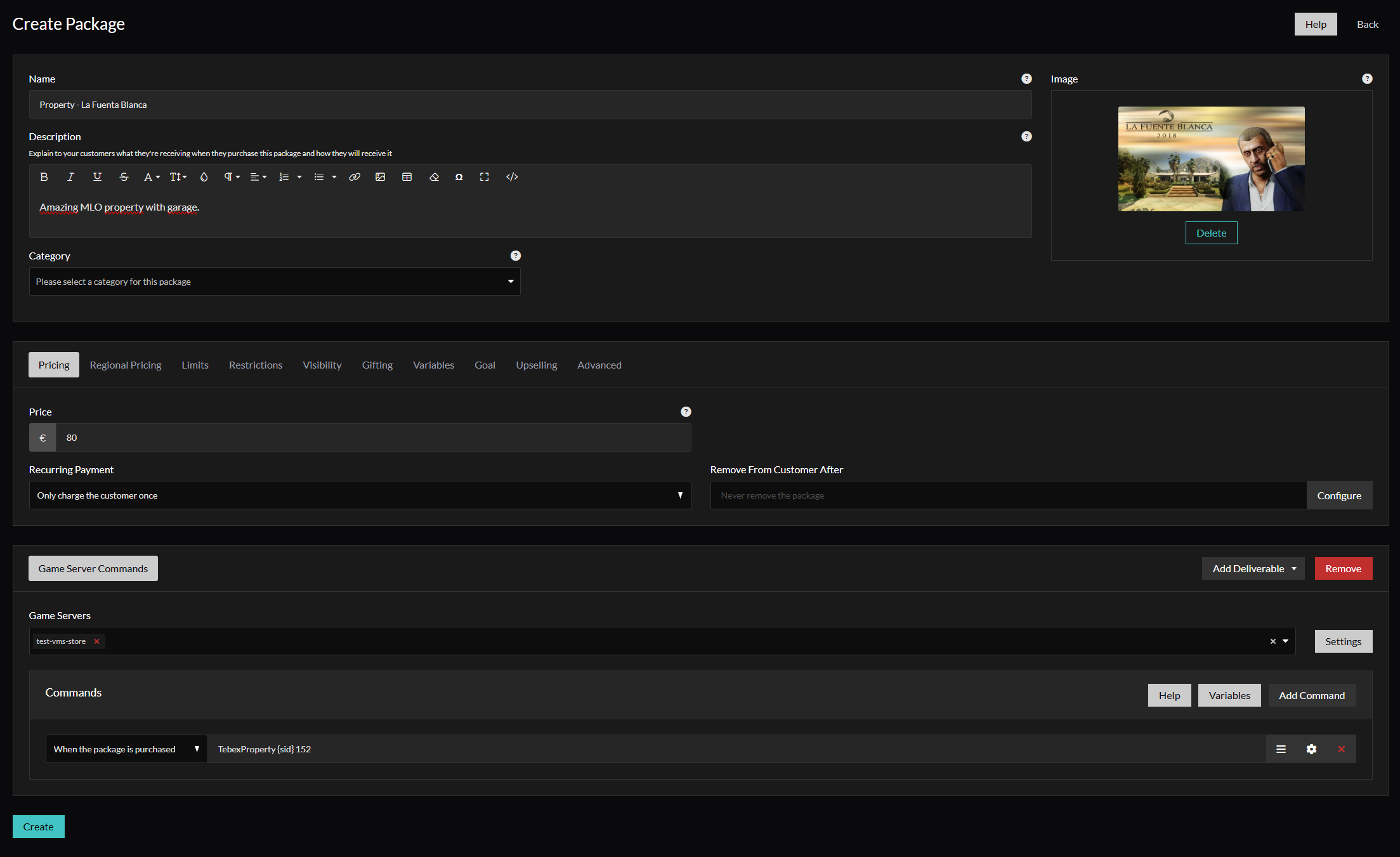 Once someone purchases your package, Tebex will trigger the command and the player will receive their property.